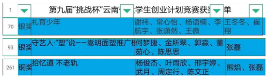 经过层层选拔,好中选优,公司三个参赛项目从第九届“挑战杯”云南省老员工创业计划竞赛组委会收到的、来自全省60所高校的609件作品中,脱颖而出。“礼育少年”、“守艺人·‘塑’说——嵩明面塑推广”两个项目获第九届“挑战杯”云南省老员工创业计划竞赛银奖,“拾艺道 不老轨”项目获第九届“挑战杯”云南省老员工创业计划竞赛铜奖,特此报喜!