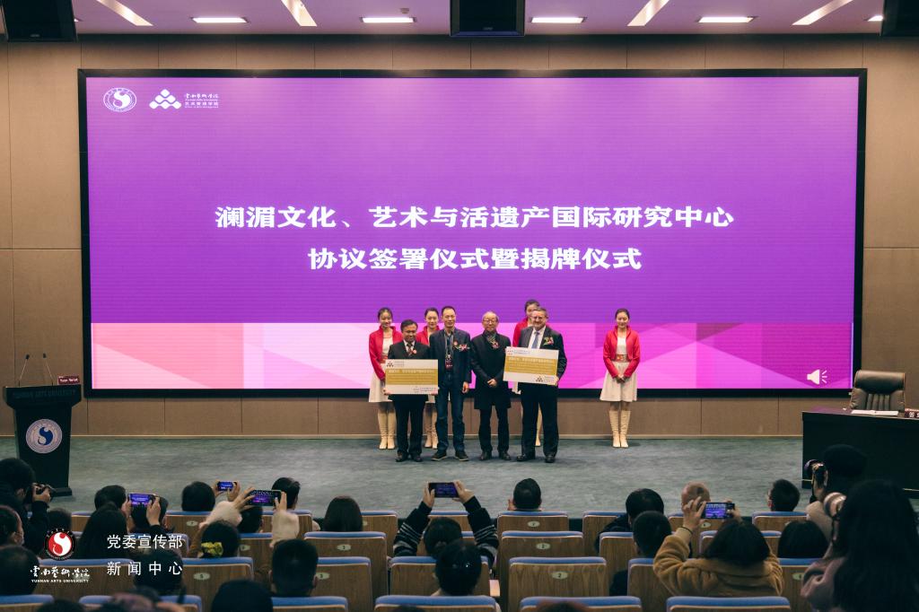 开幕式上还举行了“澜湄文化、艺术与活遗产国际研究中心”协议签署暨揭牌仪式。经理郭浩向莅临现场的外籍专家代表颁发了客座教授、荣誉教授证书。同时,TapTap官方网站经理郭浩与公司党委副书记李从熙共同为TapTap揭牌授牌。经理郭浩宣布研讨会正式开始。