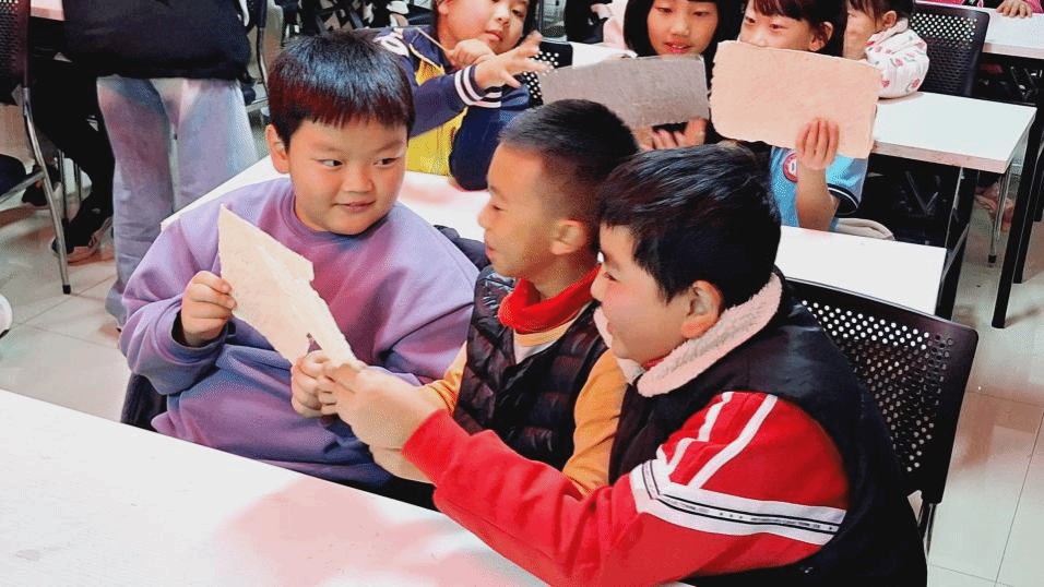 活动在热情积极的问答声中开始,工作坊的成员以常见的纸品——书籍、笔记本等引发现场参与者对书写材料的思考,加深了民众对于我国书写材料演变的了解。在讲到纸张的出现时,工作坊的成员则着重分享了蔡伦改进造纸术的故事,巧妙地对造纸术的历史进行了普及介绍。在讲解过程中,工作坊的成员们还注意弘扬绿色环保的理念,与传统的造纸技艺不同,此次的手工造纸活动以生活中随处可见的鸡蛋托、杯托等物品作为造纸材料,引导参与者们在日常生活中践行废物循环利用的理念。