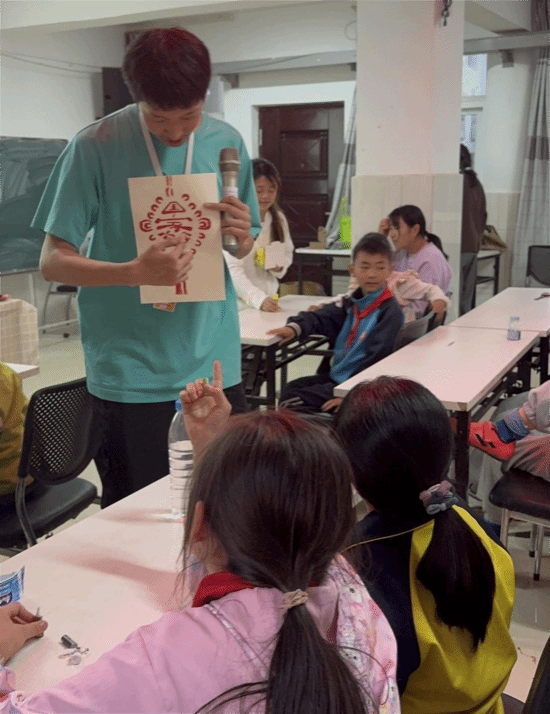 活动伊始,“回声”工作坊志愿者以生动的讲解带领孩子们追溯剪纸艺术的历史脉络。从纸张发明前的镂空雕刻技艺起源,到造纸术推动剪纸艺术正式诞生;从实用功能到独立艺术形式的演变,再到吉祥图案承载的情感价值,深入浅出的讲解让孩子们领悟到,剪纸不仅是技艺的展现,更是情感与祝福的传承载体。现场展示的传统团花与卡通形象剪纸作品,更点燃了孩子们对剪纸艺术的热情,互动环节气氛热烈。